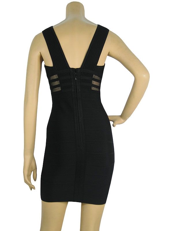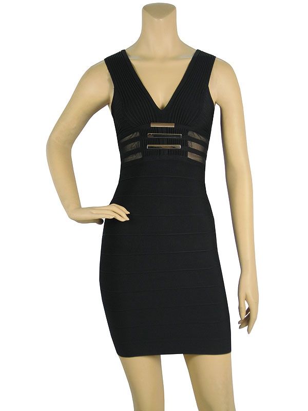 Дамска Черна Рокля Herve Leger с презрамки и метални елементи
