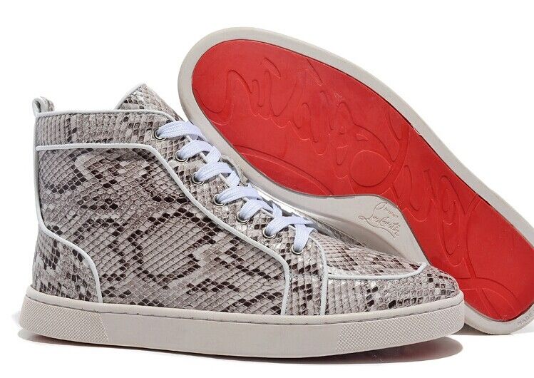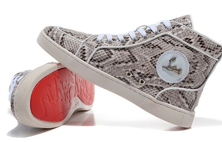 Маркови спортни кецове с червена подметка в сива змийска разцветка