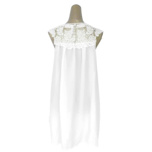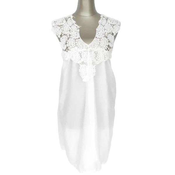 Бяла асиметрична плажна рокля туника с V-образно деколте дантела