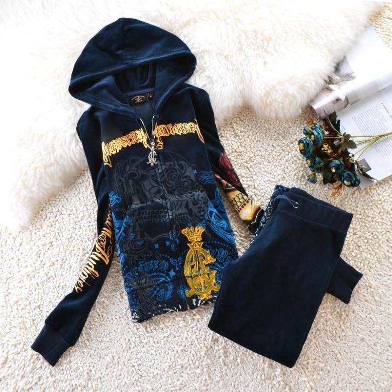 Спортен екип кадифе с камъни Christian Audigier в четири цвята
