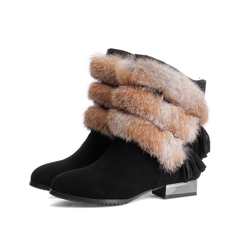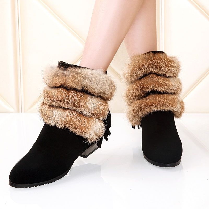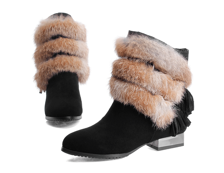 Дамски боти с нисък ток естествена кожа с естествен косъм заек, НАЛИЧНИ 36 и 38 номер