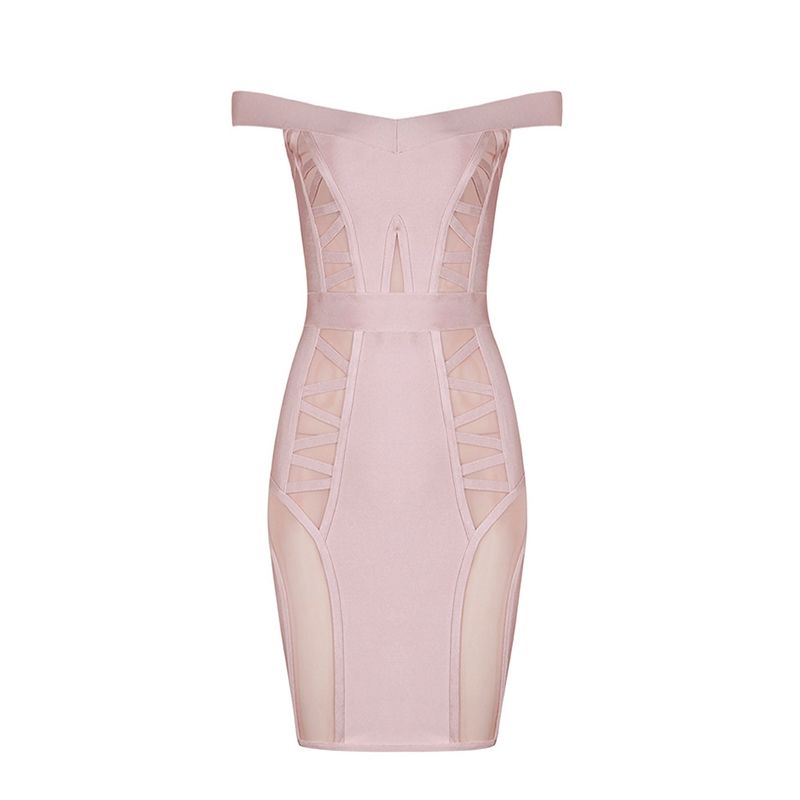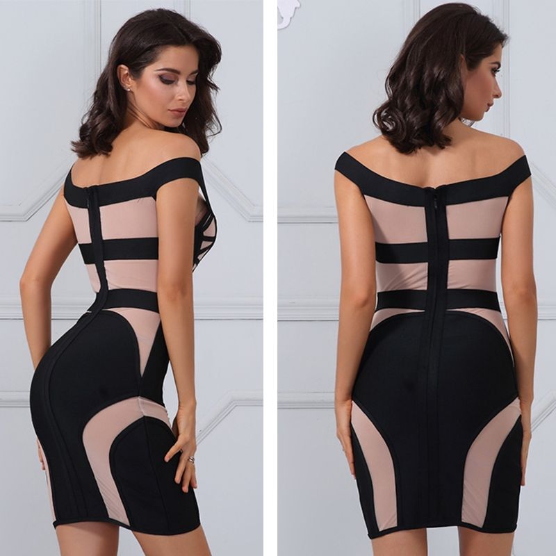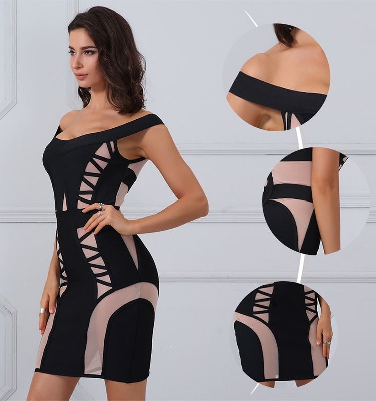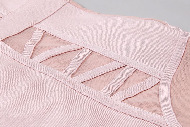 Бандажна рокля Herve Leger с деколте лодка и прозрачен тюл