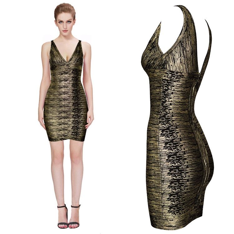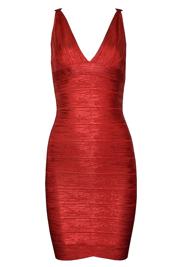 Рокля Herve Leger с дълбока V-образно деколте МЕТАЛИК в пет цвята