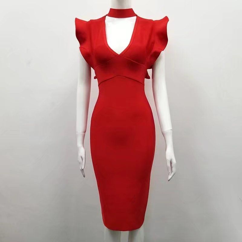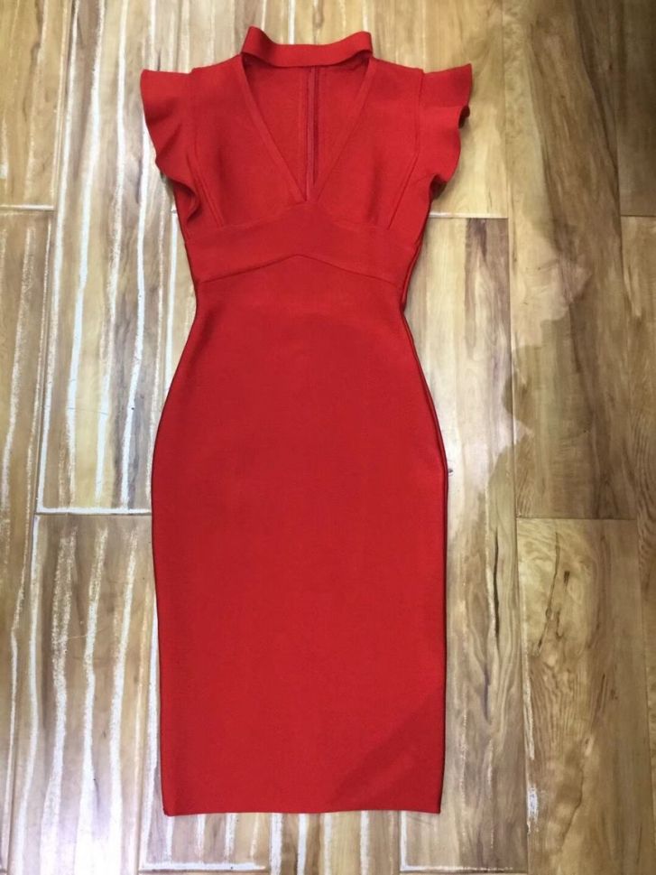 Вечерна елегантна рокля Herve Leger с дълбоко деколте
