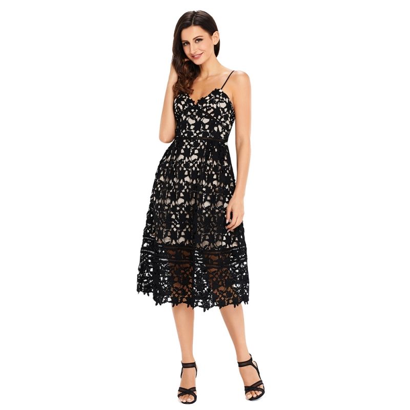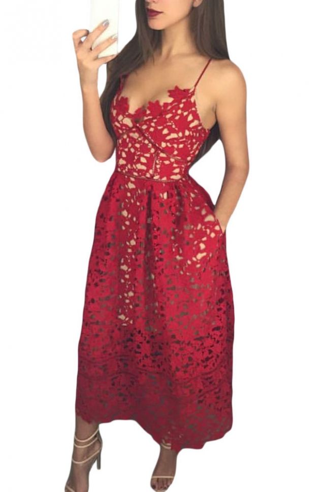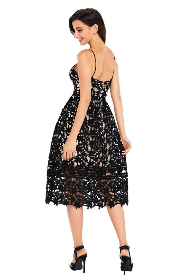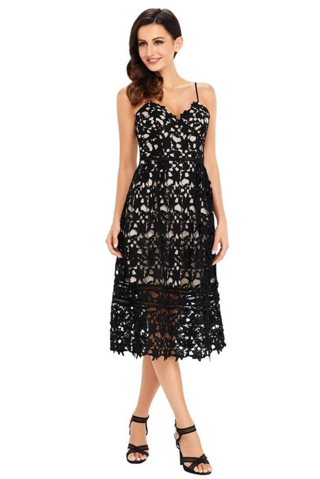 Елегантна среднодълга рокля с дантела