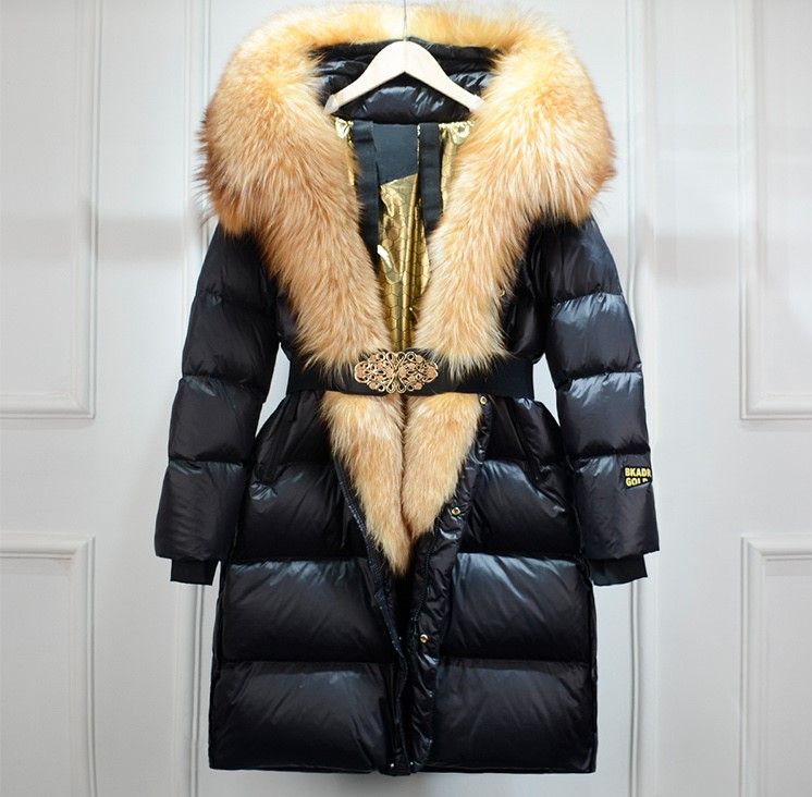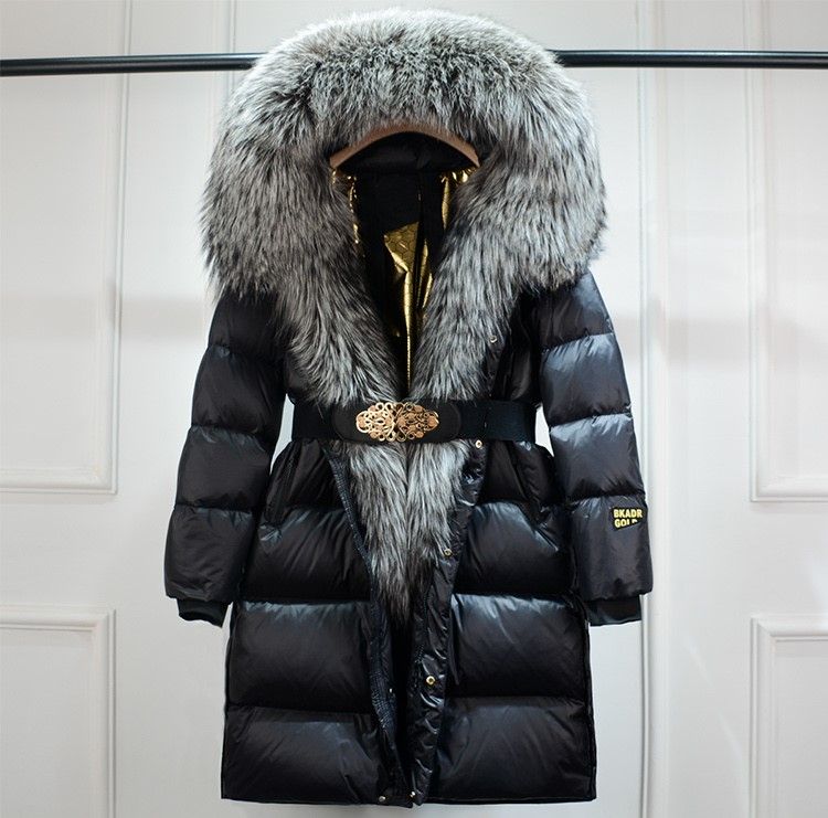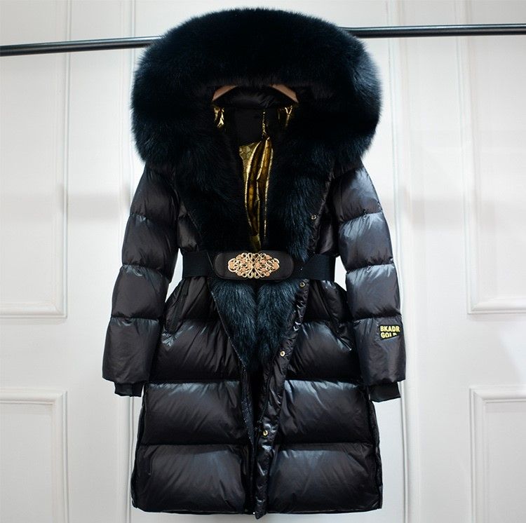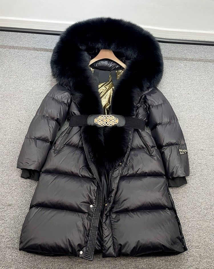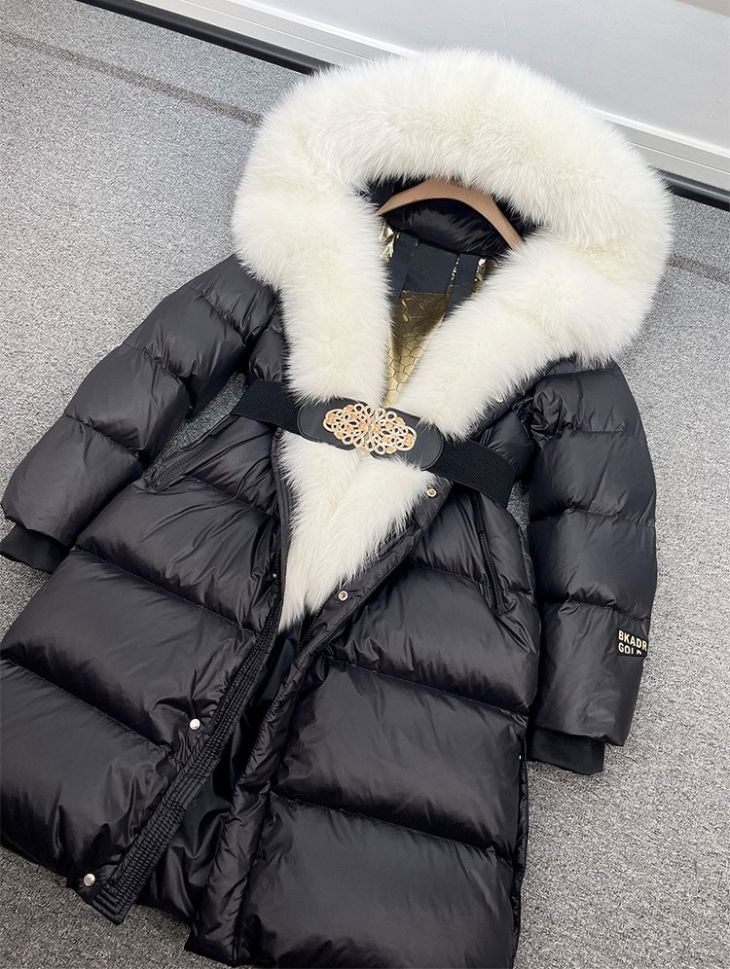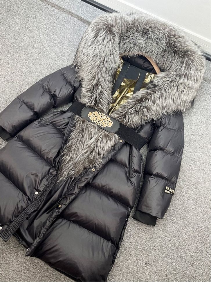 Елегантно вталено яке с гъши пух и естествен косъм лисица