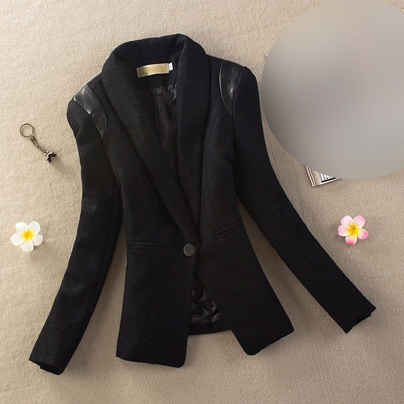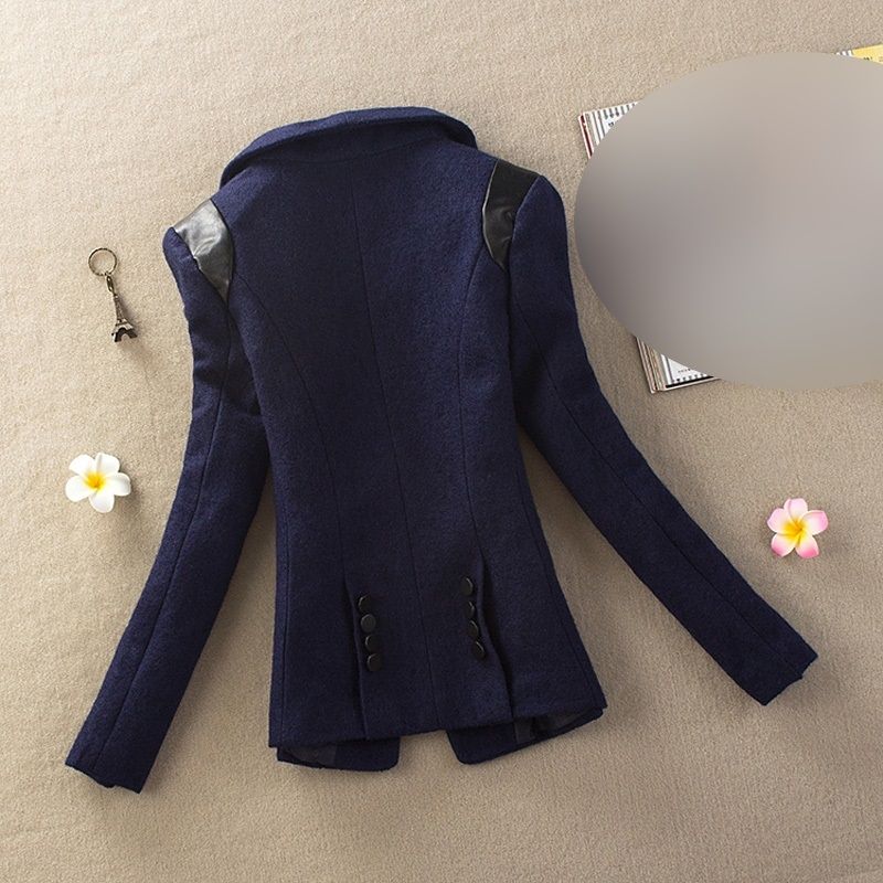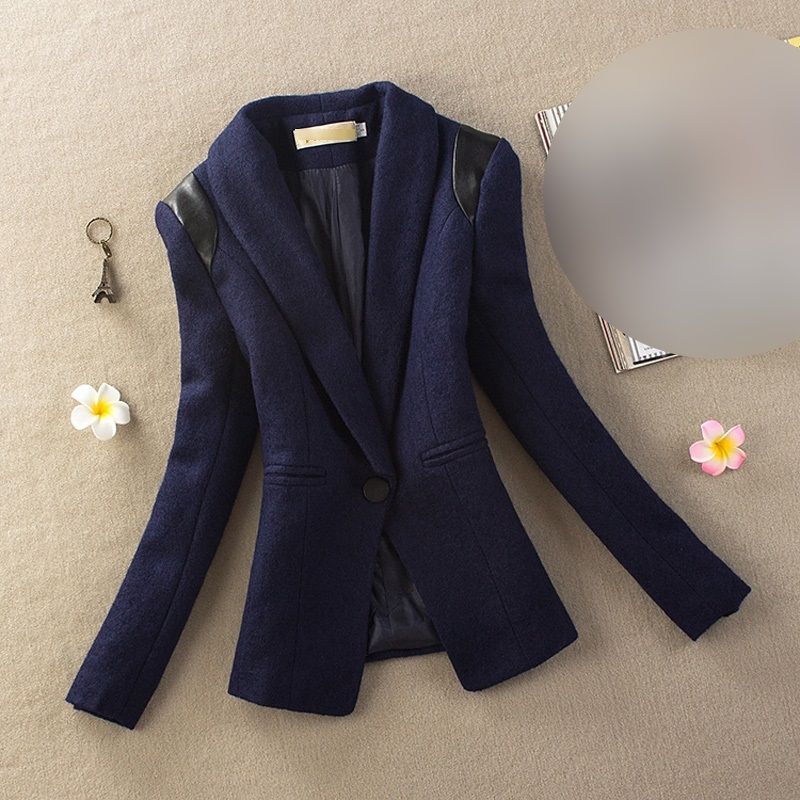 Елегантно дамско вълнено сако вталено с маншони и кожа