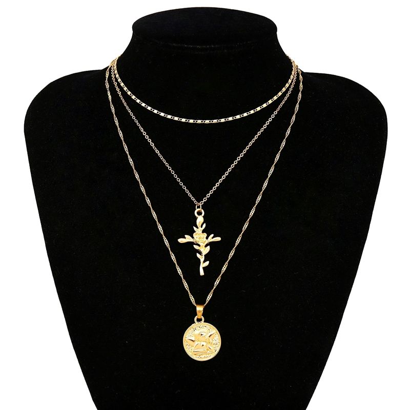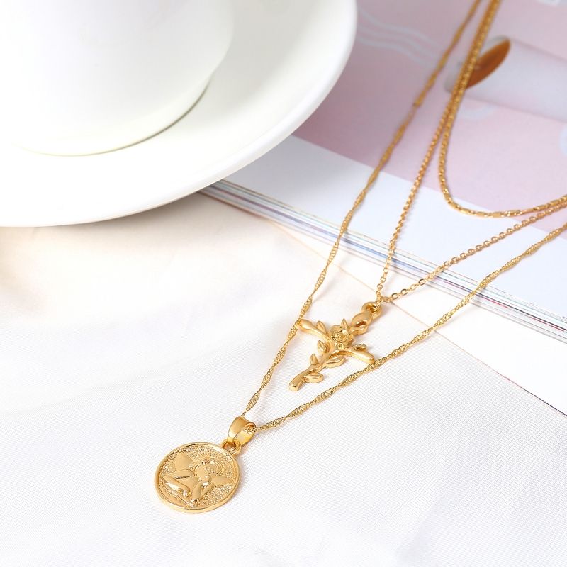 Тройно колие с КРЪСТ РОЗА и пендар с АНГЕЛ