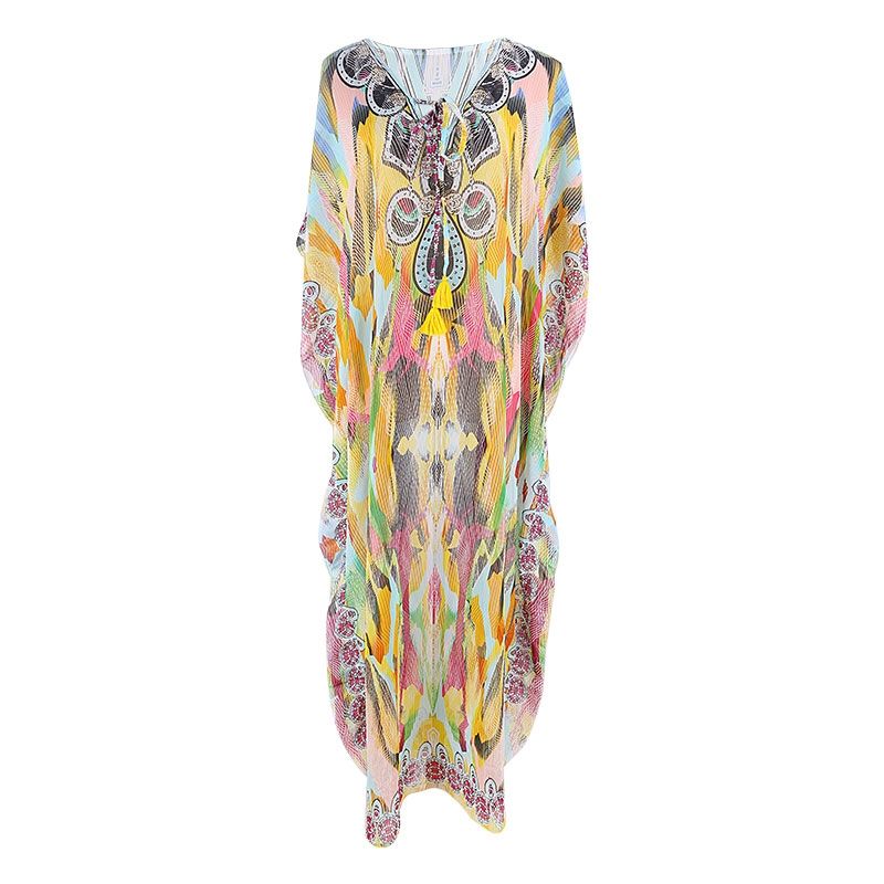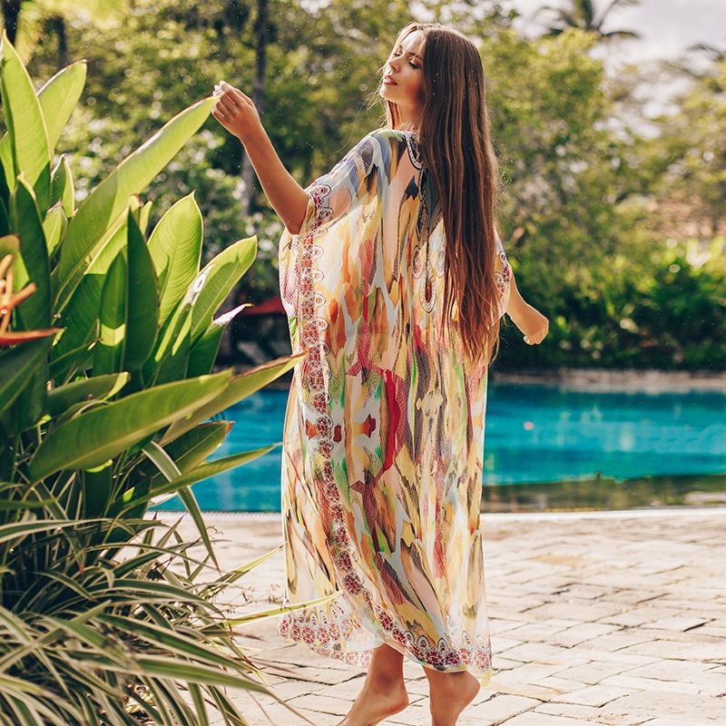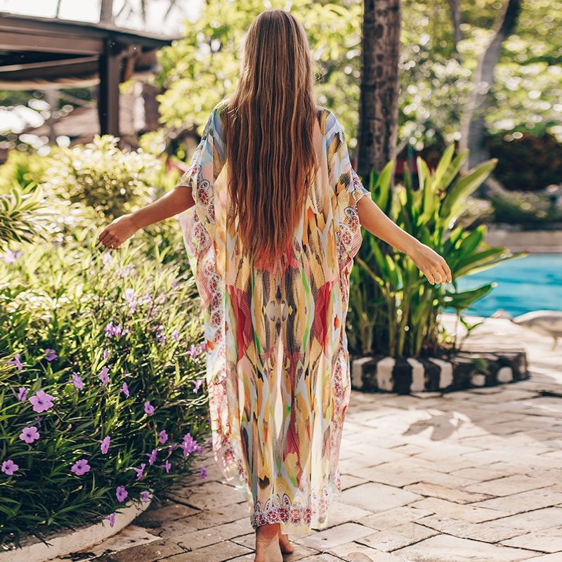 Дълга свободна плажна рокля с цветен принт