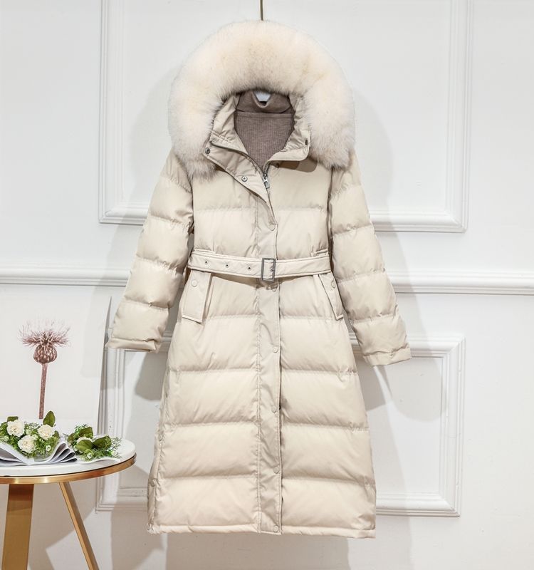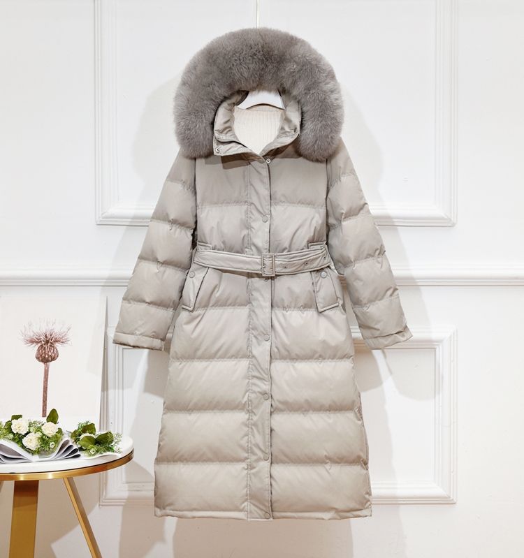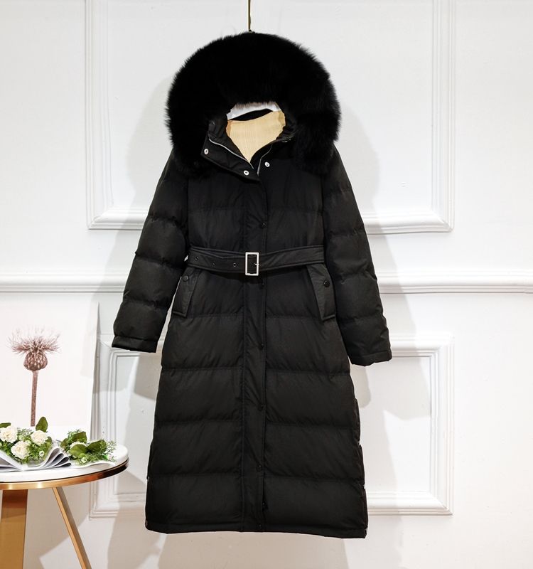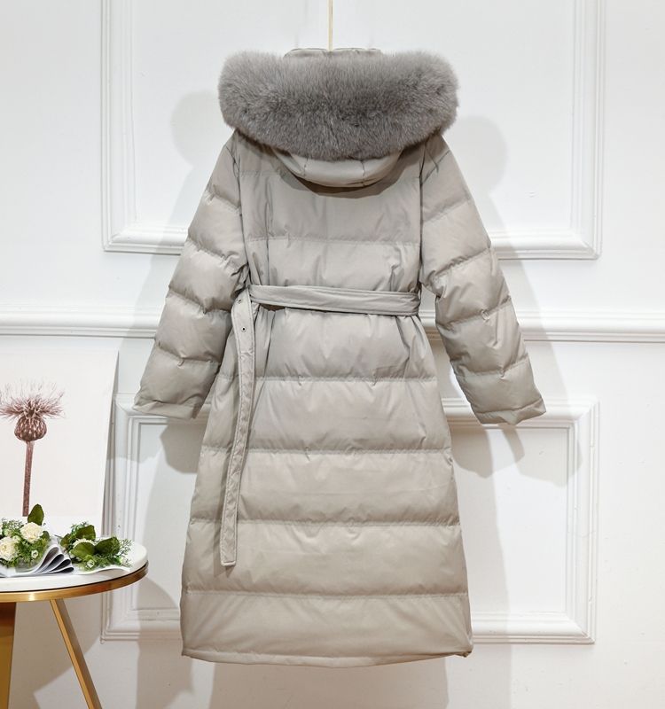 Дамско дълго яке с гъши пух с голяма яка естествен косъм лисица