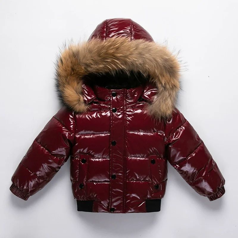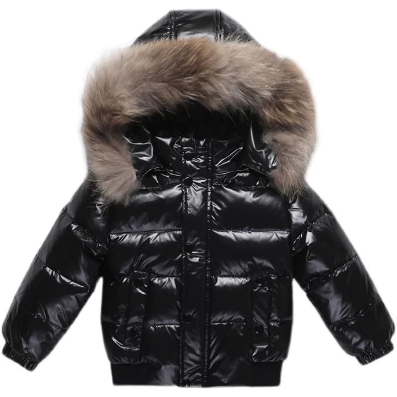 Детскo зимнo яке с гъши пух с качулка естествен косъм