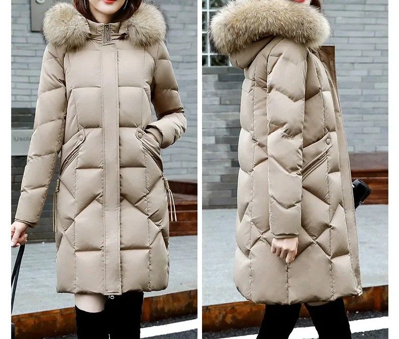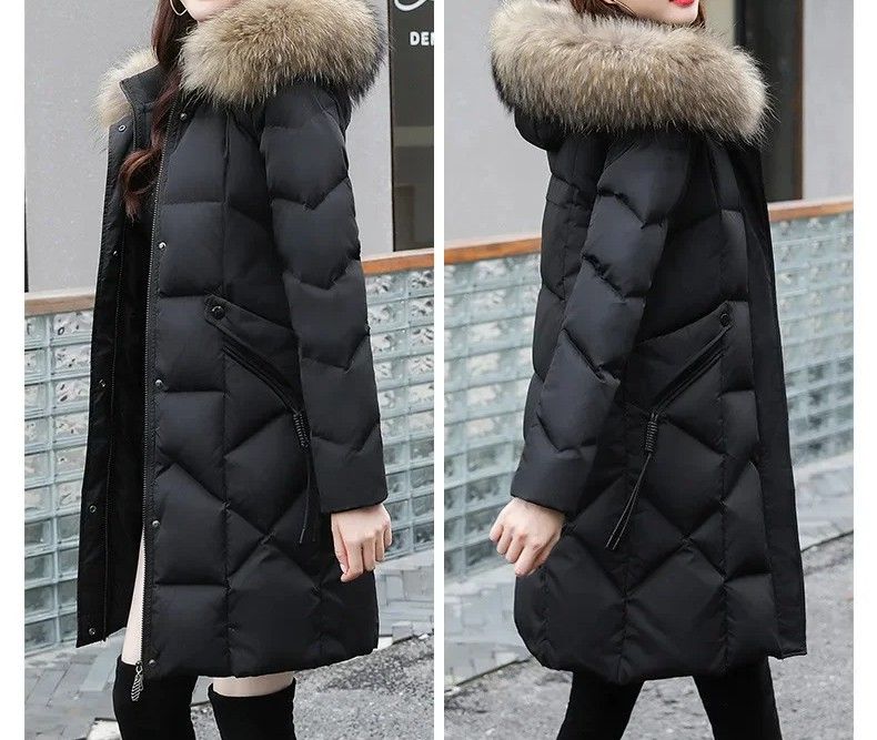 Зимно яке с яка и пух естествен косъм миеща мечка