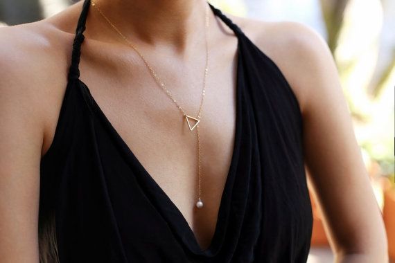 Тънък висящ синджир триъгълник с перлено топче