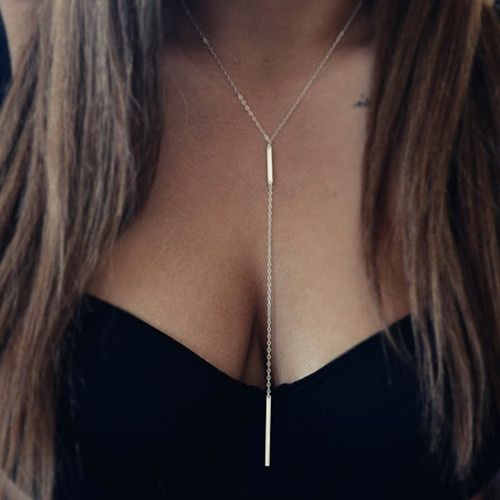 Висящо колие с нежен тънък синджир с връх метална плочка