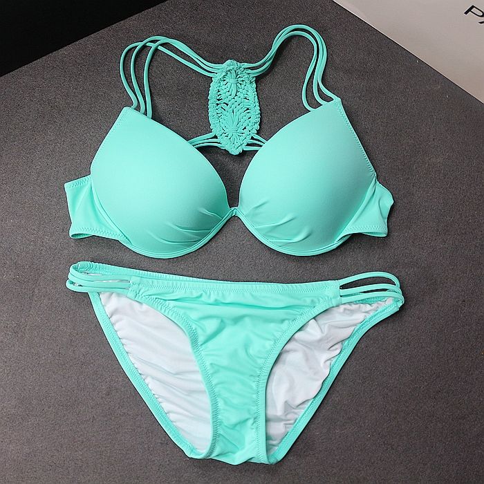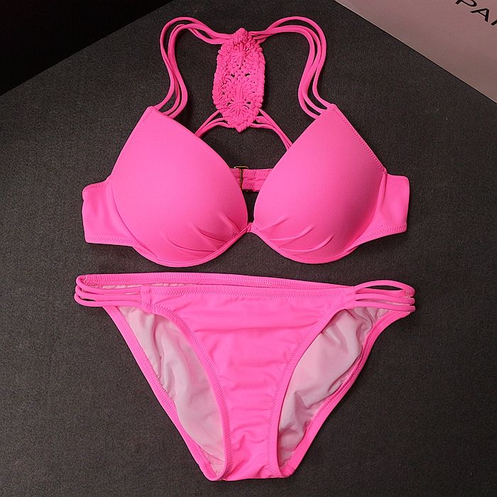 Оригинални Бански Виктория Сикрет с плетеница на гърба в три цвята