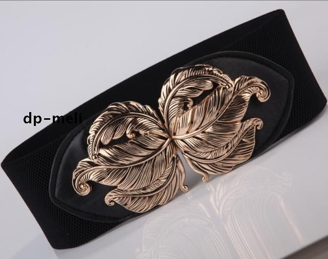 Елегантен широк ластичен колан с голяма метална тока