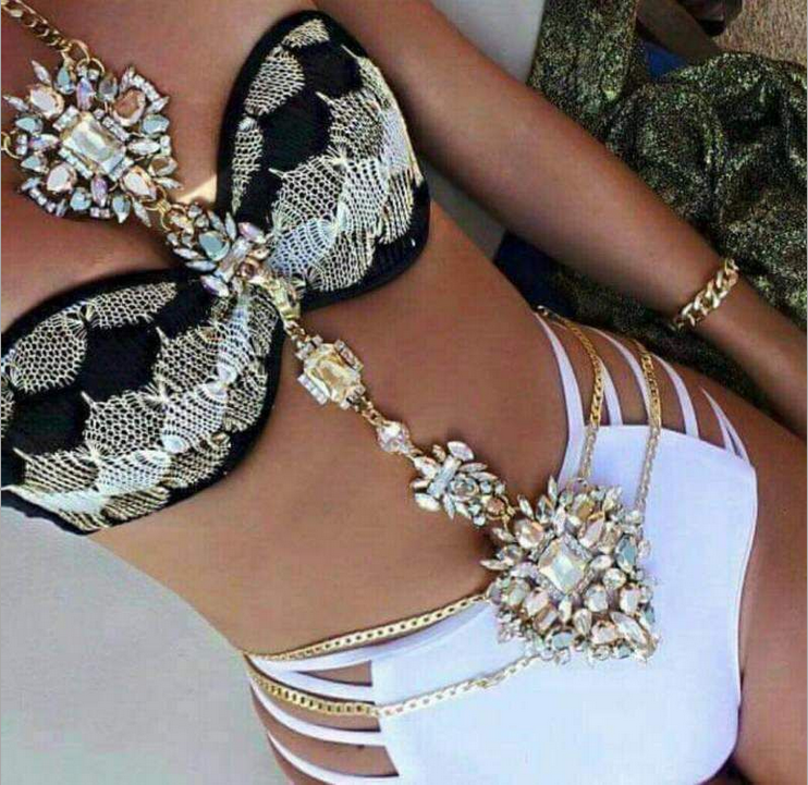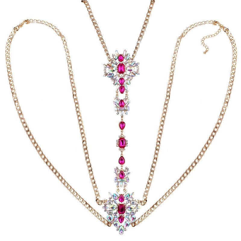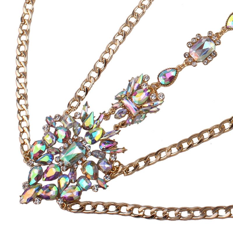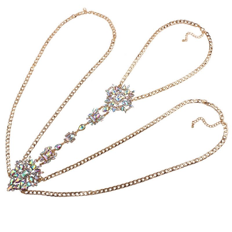 Бижу украшение за тяло дебела верига и големи кристални камъни