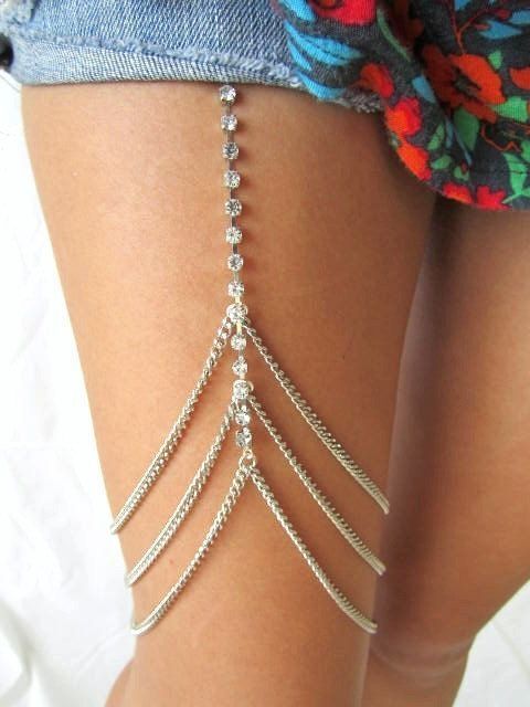 Украшение за бедро и крак с тънки верижки и кристални камъни
