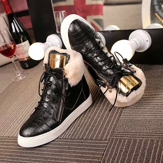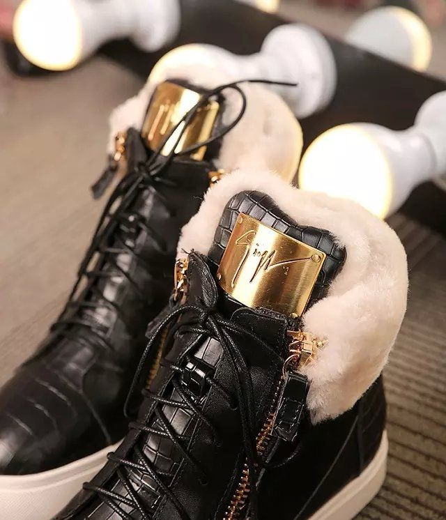Зимни кецове с платформа Giuseppe Zanott Заноти естествена кожа с пух