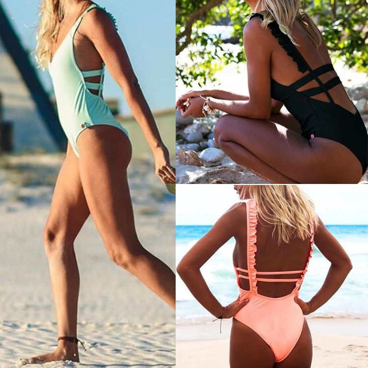 Моден цял бански с гол гръб
