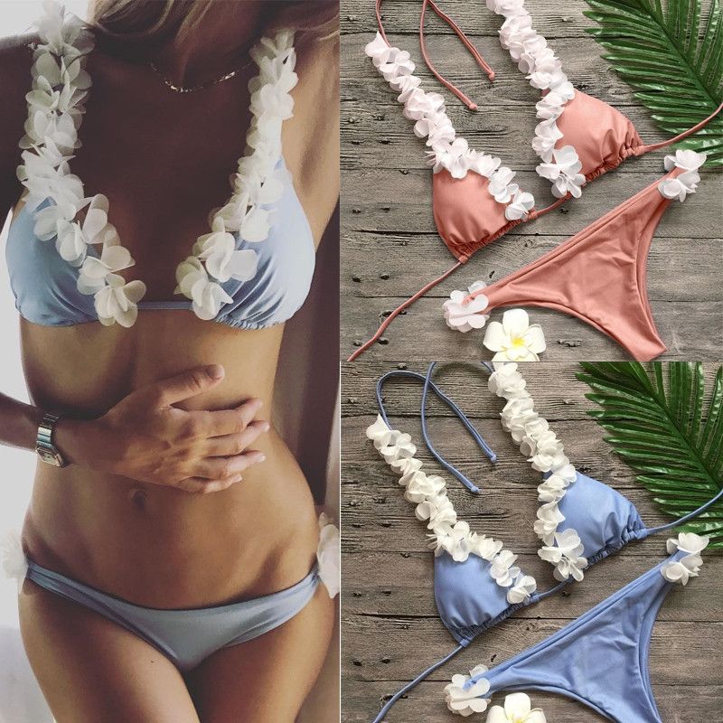 Моден бански от две части с 3D цветя ХАВАЙ