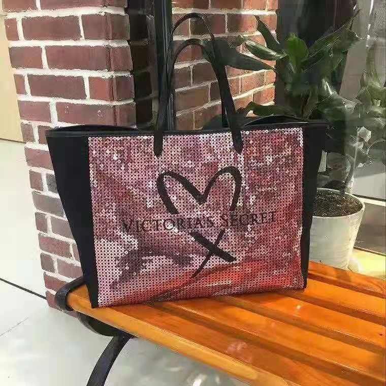 Голяма чанта VS черна с розови пайети